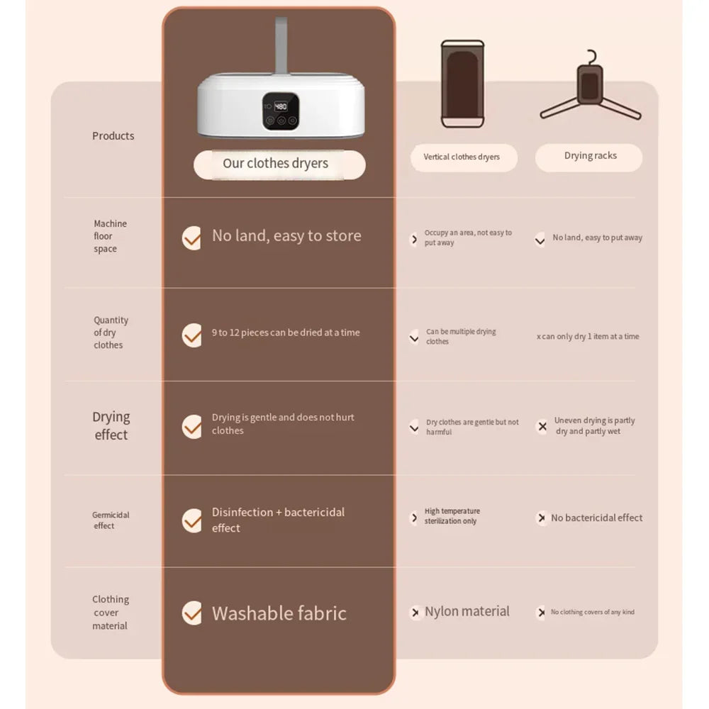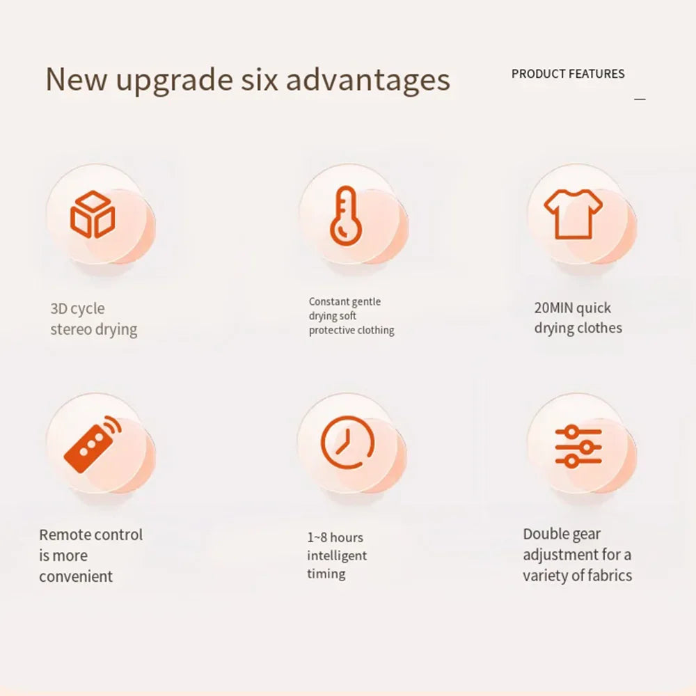 Compact and efficient, this portable mini clothes dryer delivers professional drying performance in a space-saving design. Perfect for apartments, dorms, or travel, it features adjustable heat settings and rapid drying cycles that handle delicate fabrics and everyday wear with precision. Lightweight construction makes it easy to move between rooms or pack for trips, while energy-efficient operation keeps utility costs low. Ideal for those seeking laundry convenience without the footprint of traditional dryers.