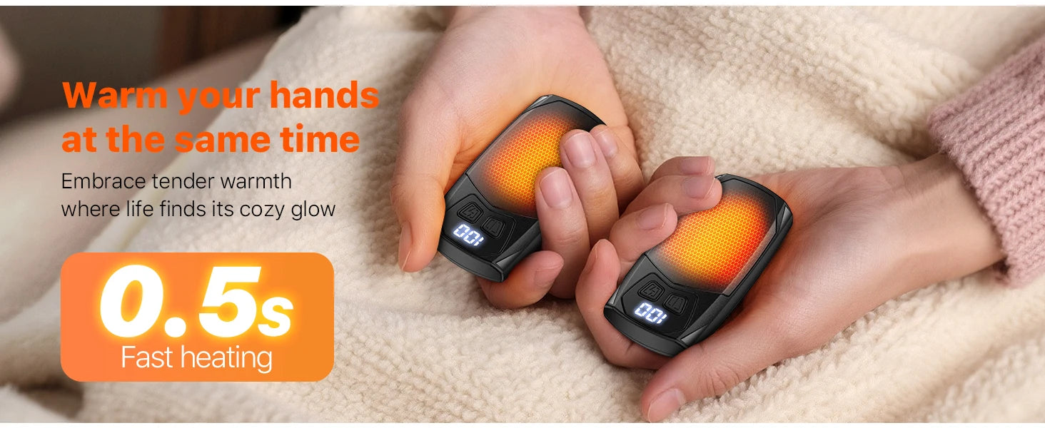 Keep your hands warm anywhere with these Rechargeable Electric Hand Warmers, featuring a 2-pack design with 2000mAh batteries for long-lasting heat. They warm up quickly and provide consistent, comfortable heat to protect your hands from cold weather during outdoor activities.